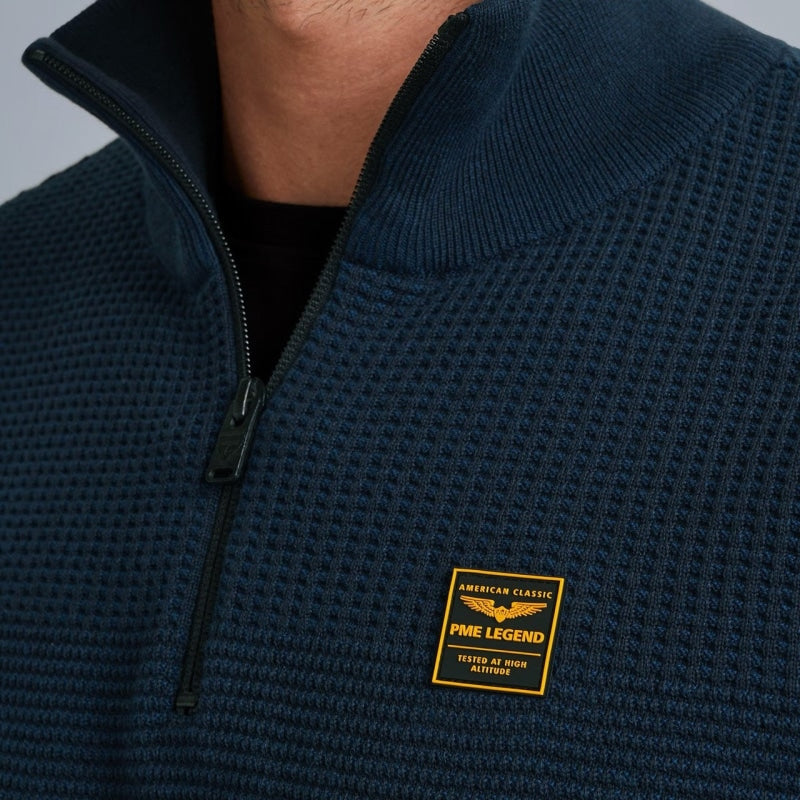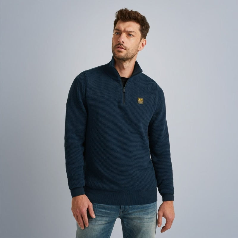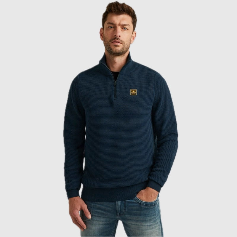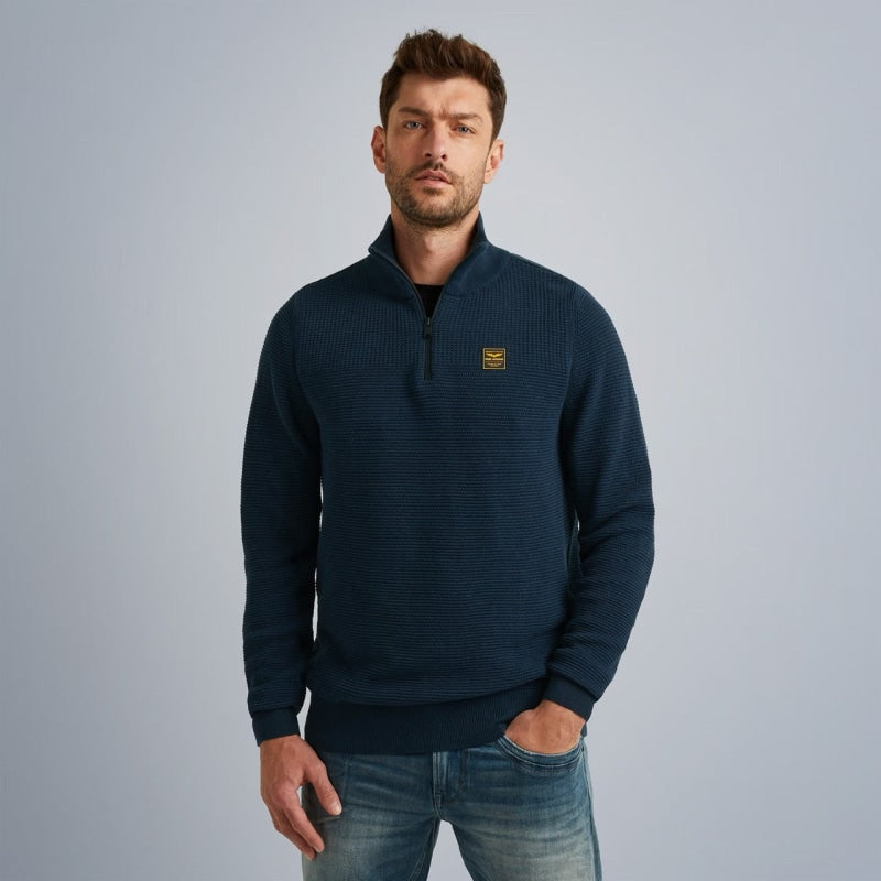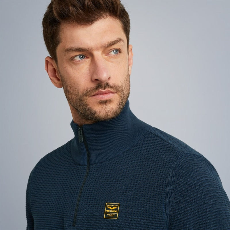 Op zoek naar een nieuwe PME Legend trui? Deze trui met opstaande kraag en halve rits is een ideale toevoeging aan je kledingkast. De kenmerkende PME Legend details zorgen voor de finishing touch. Combineer de trui met je favoriete jeans en creëer eenvoudig een stoere casual look waarmee je alle kanten op kunt.