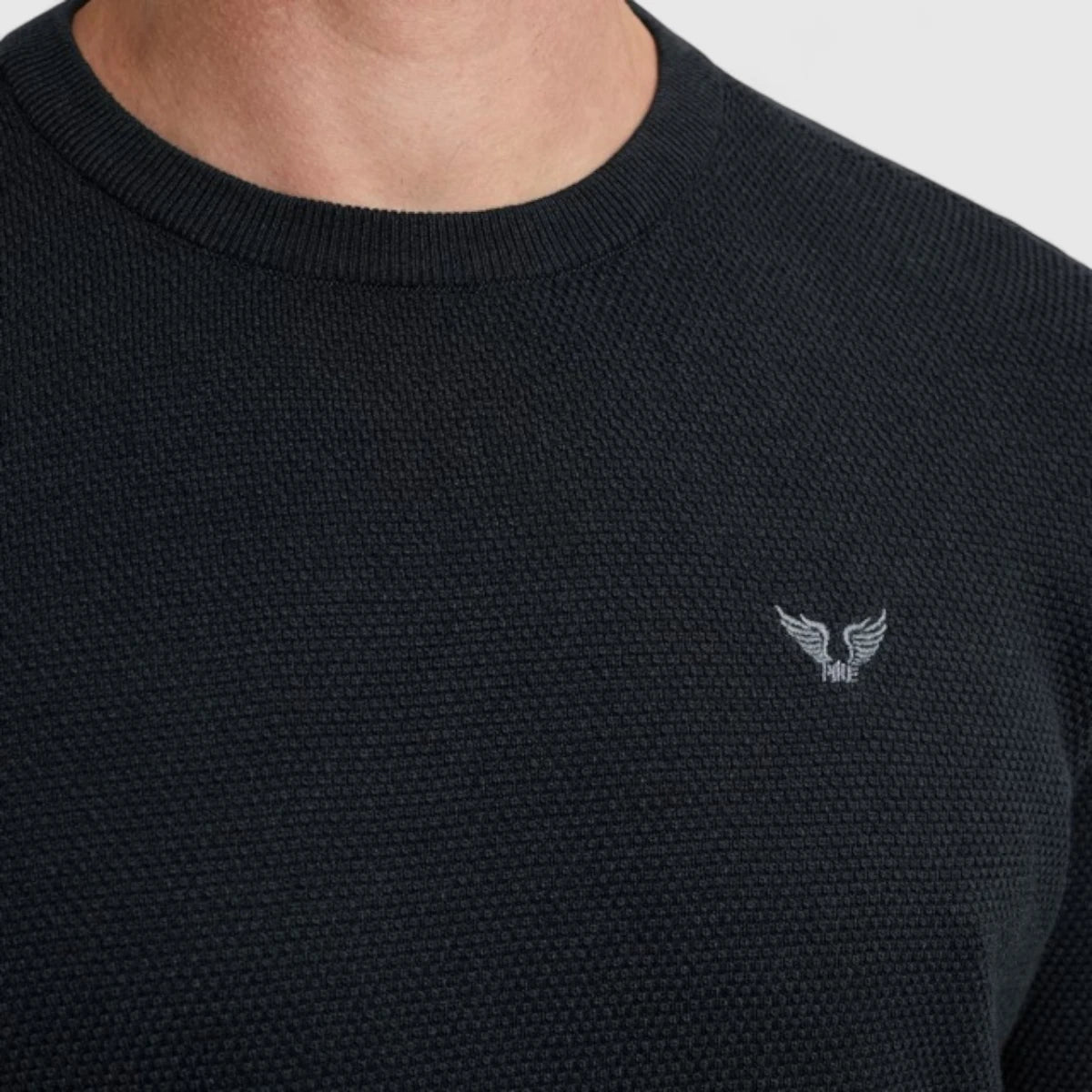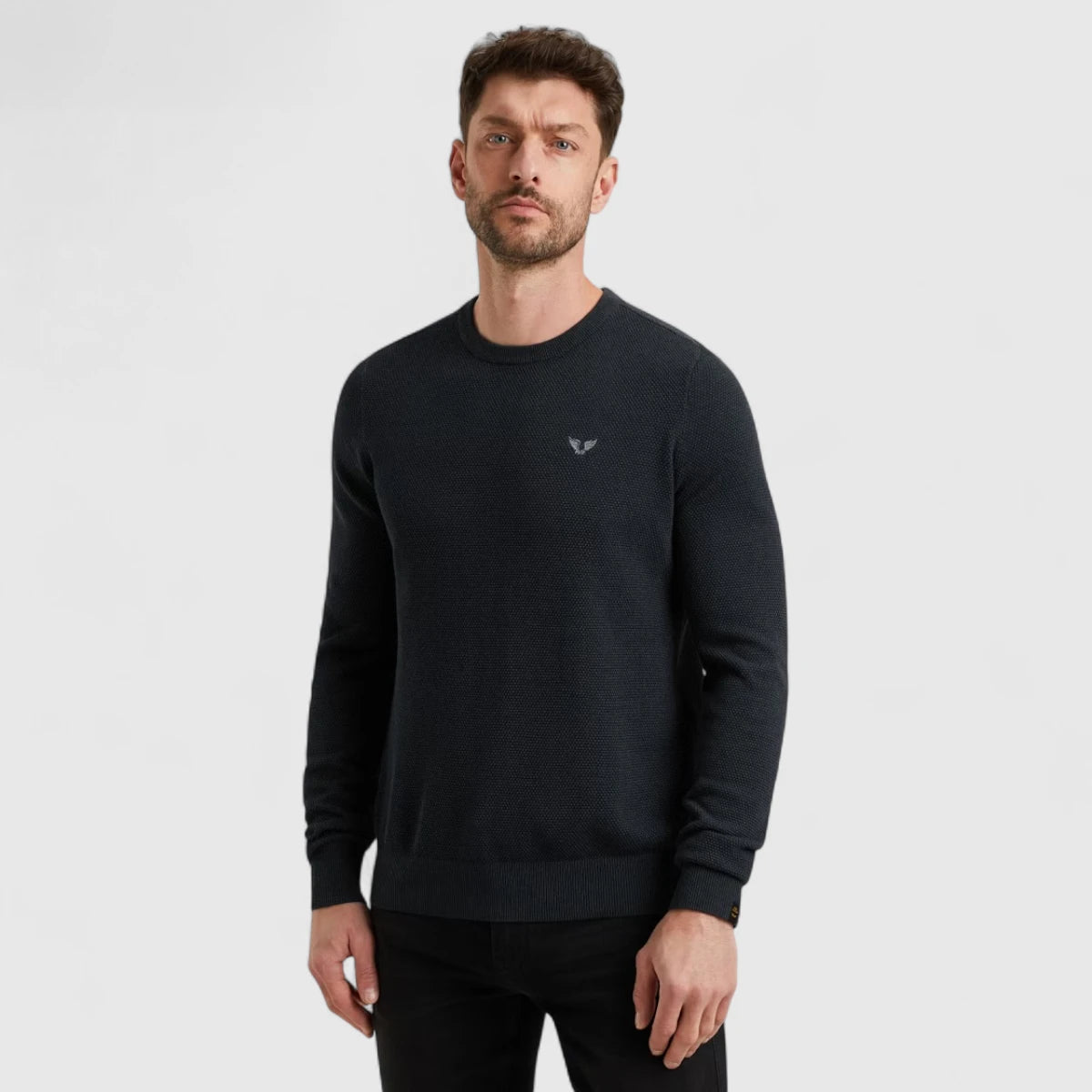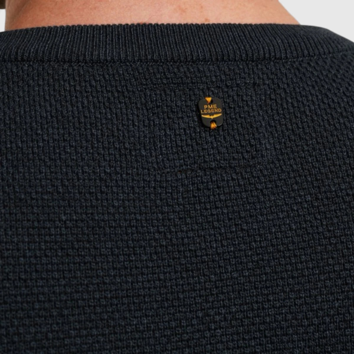 Deze PME Legend trui is uitgevoerd in een fijne structuurbrei en heeft een klassieke ronde hals, wat zorgt voor een cleane en tijdloze look. Dankzij de combinatie van katoen met Modal (TENCEL™) voelt de trui zijdezacht aan en behoudt hij zijn vorm, zelfs na meerdere wasbeurten. Perfect voor een comfortabele en verzorgde uitstraling in elk seizoen.