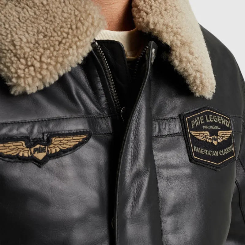 De PME Legend Hudson Bomber Jacket is geïnspireerd op een echte Amerikaanse klassieker, de originele B-3 flight jacket. Deze jas, gemaakt van soepel buffelleer, biedt ultiem comfort en bescherming onder alle weersomstandigheden. Dankzij de olie-impregnatie is het leer bestand tegen regen en wind, waardoor deze jas ideaal is voor elk seizoen. De afneembare kraag van schapenbont en de lichtgewicht, gequilte voering zorgen voor extra warmte en comfort. De diverse badges en de flight jacket-look geven deze jas de authentieke PME Legend uitstraling.