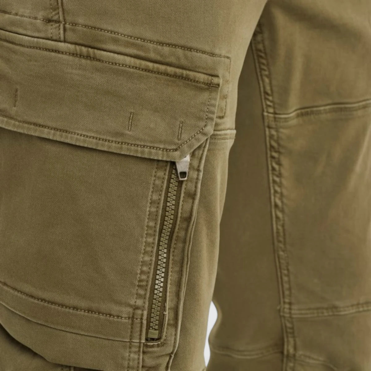 • Zakken: 2 achterzakken met drukknopen, 2 oversized cargozakken met rits, 2 voorzakken en een extra zak